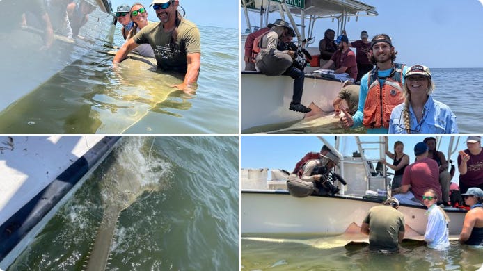 UF group catches and tags a 13 ft sawfish.